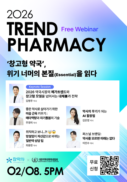 [데일리팜=강혜경 기자]약국체인 참약사(대표 김병주)와 대한약학대학생협회(회장 김백건)이 개최하는 ‘2026 트렌드파마시’ 웨비나 사전 신청자가 700명을 돌파하며 관심을 입증하고 있다.